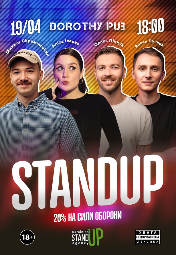 СТЕНДАП в Дороті Паб відбудеться 19 квітня 2026, 18:00, неділя в Dorothy pub. За допомогою сервісу internet-bilet.ua, Ви зможете з легкістю забронювати, замовити та купити квитки на концерт, спектакль, оперу, балет, майстер-класи, спортивні та дитячі заходи, що Вас цікавлять, оплативши їх найбільш зручним для Вас способом: через інтернет банківською карткою VISA/MasterCard, готівкою або кур'єром, якщо зробите замовлення квитка з доставкою.