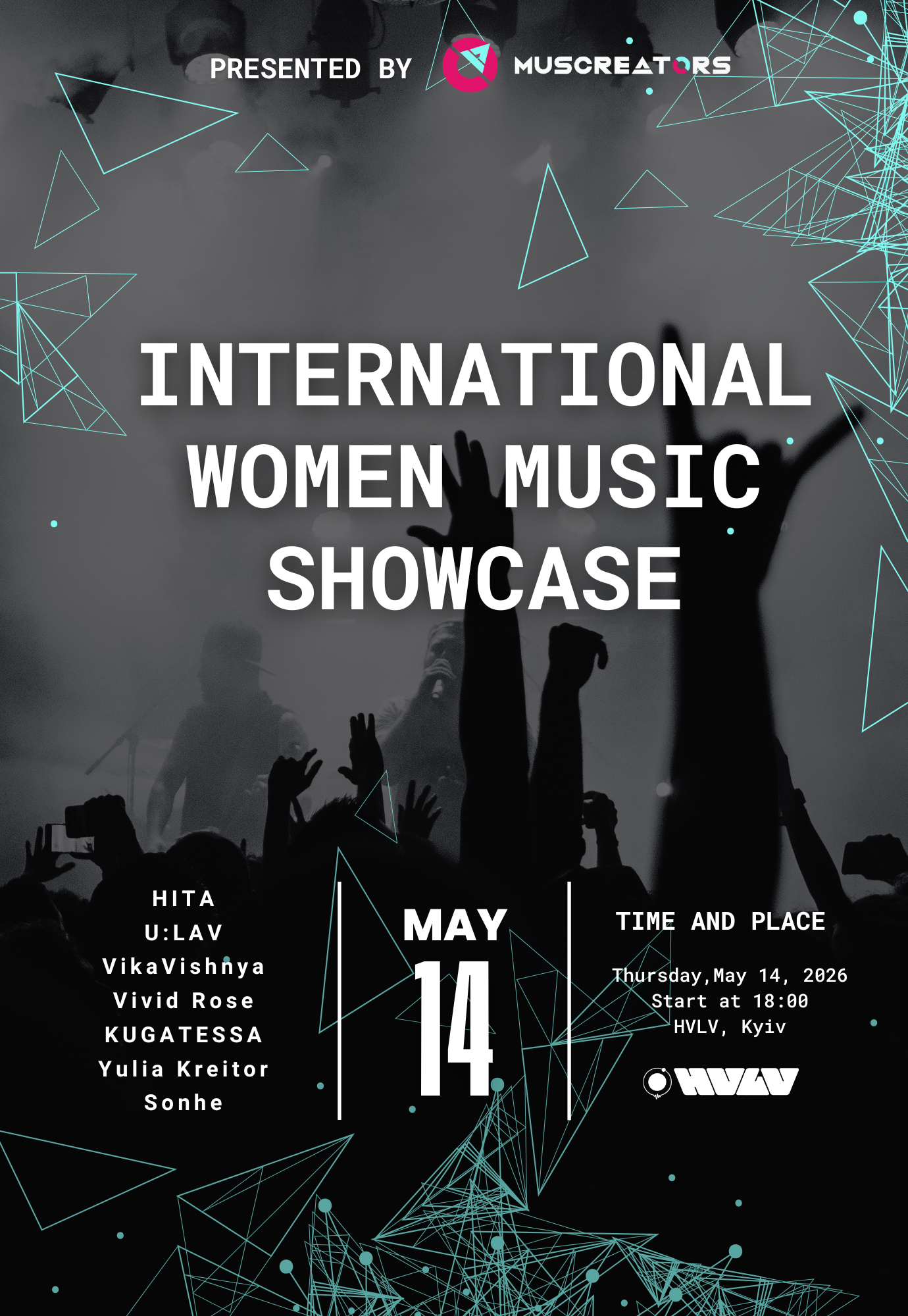International Women Music Showcase відбудеться 14 травня 2026, 18:00, четвер в HVLV Bar (Бар Хвильовий). За допомогою сервісу internet-bilet.ua, Ви зможете з легкістю забронювати, замовити та купити квитки на концерт, спектакль, оперу, балет, майстер-класи, спортивні та дитячі заходи, що Вас цікавлять, оплативши їх найбільш зручним для Вас способом: через інтернет банківською карткою VISA/MasterCard, готівкою або кур'єром, якщо зробите замовлення квитка з доставкою.