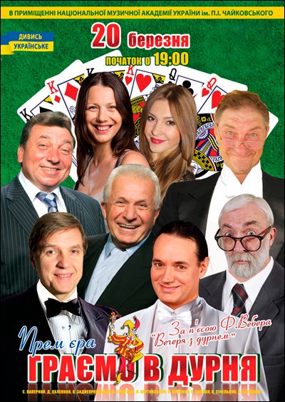 Спектакль «Граємо в дурня». 20 березня 2016 року на сцені Національної музичної академії України імені П. І. Чайковського.