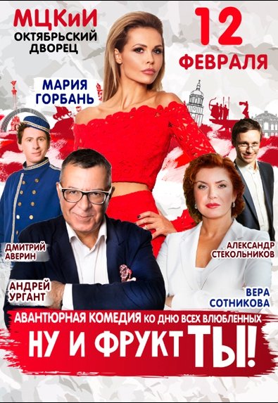 Ну и фрукт ТЫ! відбудеться 12 лютого 2017, 19:00, неділя в МЦКМ (Жовтневий Палац) . За допомогою сервісу internet-bilet.ua, Ви зможете з легкістю забронювати, замовити та купити квитки на концерт, спектакль, оперу, балет, майстер-класи, спортивні та дитячі заходи, що Вас цікавлять, оплативши їх найбільш зручним для Вас способом: через інтернет банківською карткою VISA/MasterCard, готівкою або кур'єром, якщо зробите замовлення квитка з доставкою.