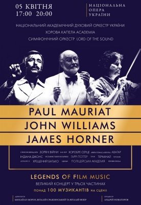 Представляємо Вам гучне продовження проекту “Legends of Film Music” – музичне дійство у виконанні понад 100 музикантів, що відтворять найкращі роботи одних з найгеніальніших кінокомпозиторів: Paul Mauriat, John Williams, James Horner.