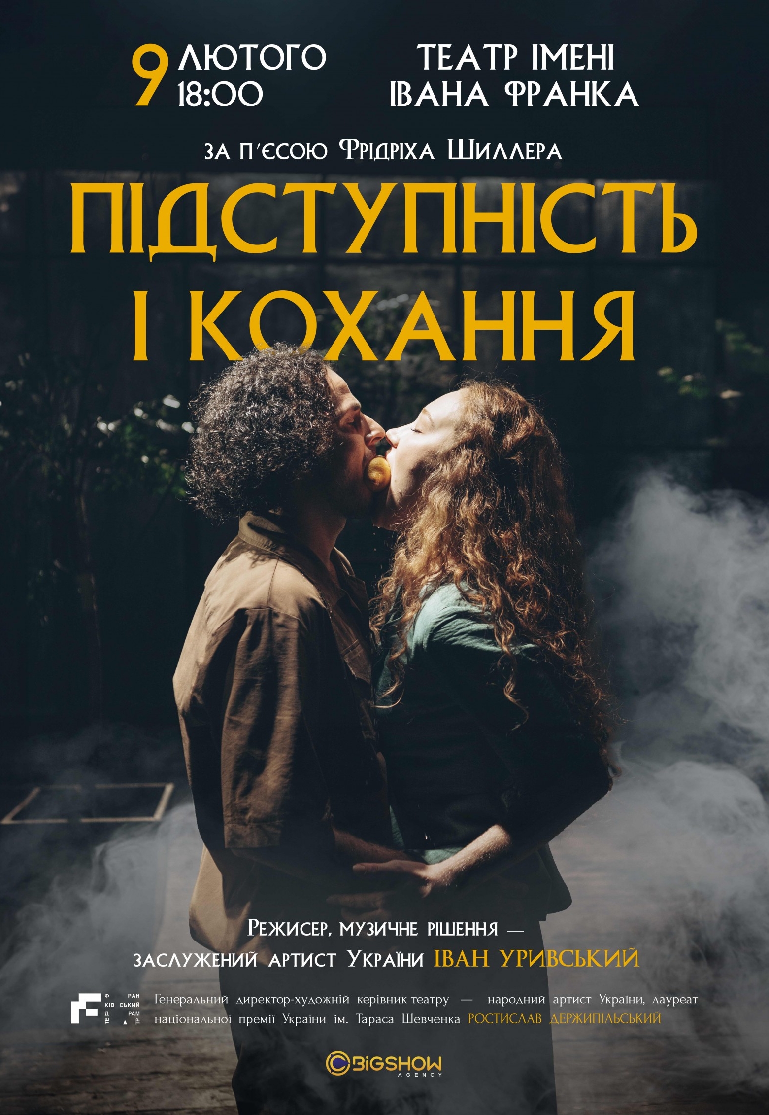 Вистава "Підступність і кохання" відбудеться 9 лютого 2026, 18:00, понеділок в Національний академічний драматичний театр ім. Івана Франка. За допомогою сервісу internet-bilet.ua, Ви зможете з легкістю забронювати, замовити та купити квитки на концерт, спектакль, оперу, балет, майстер-класи, спортивні та дитячі заходи, що Вас цікавлять, оплативши їх найбільш зручним для Вас способом: через інтернет банківською карткою VISA/MasterCard, готівкою або кур'єром, якщо зробите замовлення квитка з доставкою.