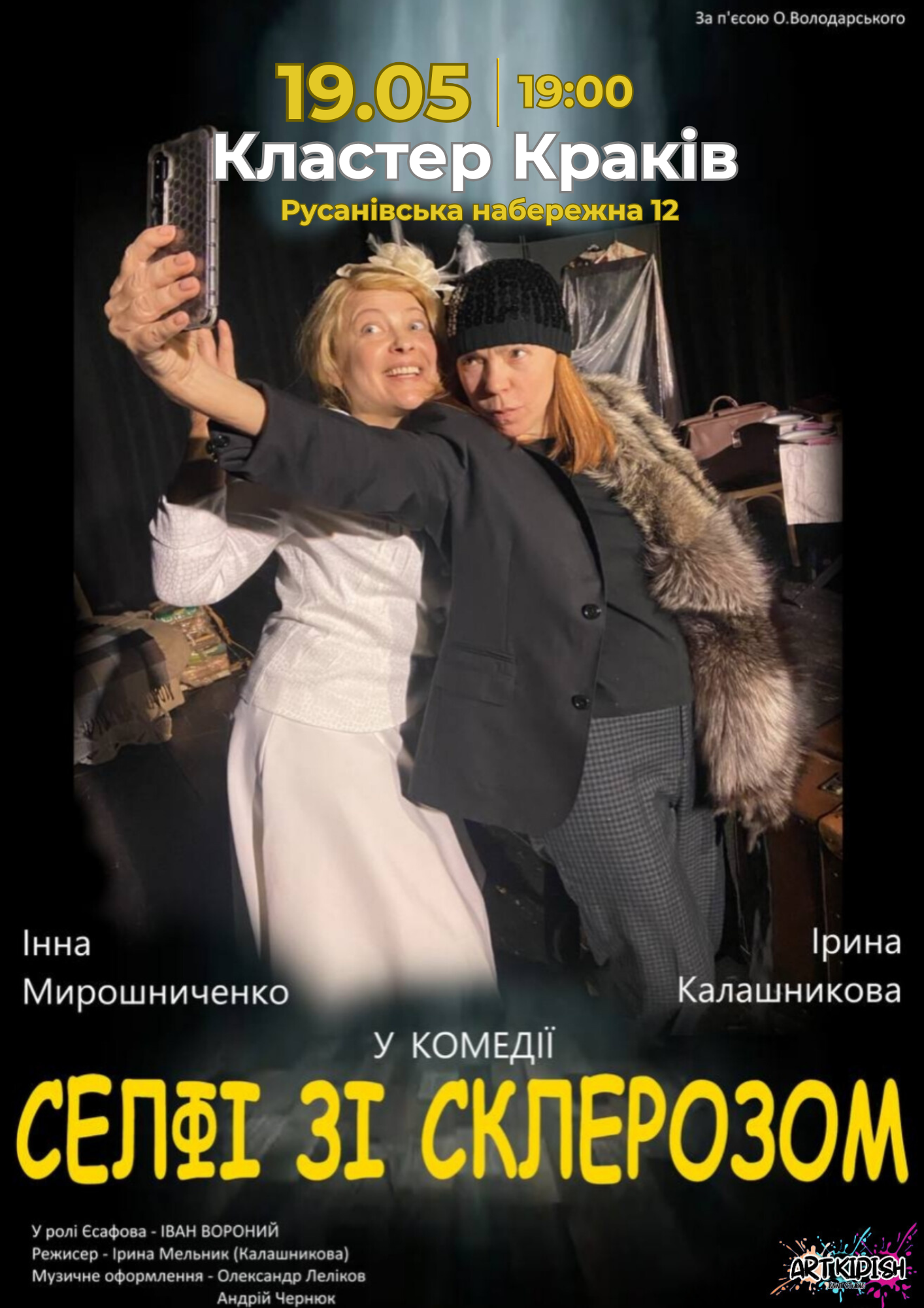 Лірична комедія "Селфі зі склерозом" відбудеться 19 травня 2026, 19:00, вівторок в Київський культурний центр "Краків". За допомогою сервісу internet-bilet.ua, Ви зможете з легкістю забронювати, замовити та купити квитки на концерт, спектакль, оперу, балет, майстер-класи, спортивні та дитячі заходи, що Вас цікавлять, оплативши їх найбільш зручним для Вас способом: через інтернет банківською карткою VISA/MasterCard, готівкою або кур'єром, якщо зробите замовлення квитка з доставкою.