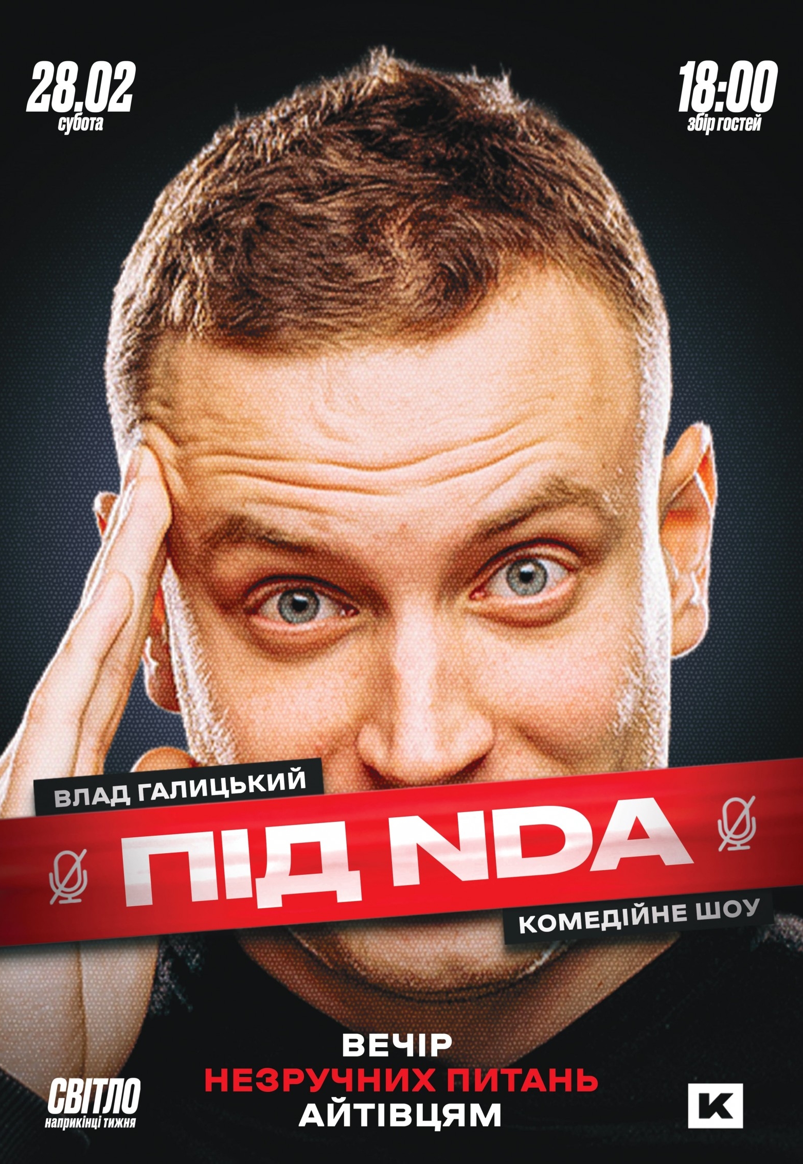 Айтішне стендап-шоу «Під NDA» відбудеться 28 лютого 2026, 18:30, субота в Kooperativ. За допомогою сервісу internet-bilet.ua, Ви зможете з легкістю забронювати, замовити та купити квитки на концерт, спектакль, оперу, балет, майстер-класи, спортивні та дитячі заходи, що Вас цікавлять, оплативши їх найбільш зручним для Вас способом: через інтернет банківською карткою VISA/MasterCard, готівкою або кур'єром, якщо зробите замовлення квитка з доставкою.