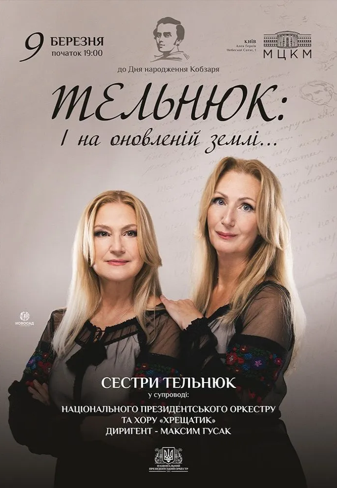 ТЕЛЬНЮК: Сестри. І на оновленій землі... відбудеться 9 березня 2026, 19:00, понеділок в МЦКМ (Жовтневий Палац) . За допомогою сервісу internet-bilet.ua, Ви зможете з легкістю забронювати, замовити та купити квитки на концерт, спектакль, оперу, балет, майстер-класи, спортивні та дитячі заходи, що Вас цікавлять, оплативши їх найбільш зручним для Вас способом: через інтернет банківською карткою VISA/MasterCard, готівкою або кур'єром, якщо зробите замовлення квитка з доставкою.