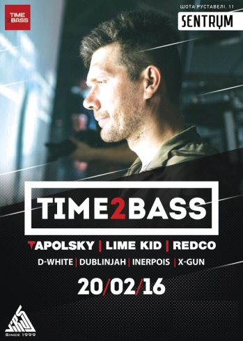 Time2Bass відбудеться 20 лютого 2016, 23:30, субота в клуб Sentrum. За допомогою сервісу internet-bilet.ua, Ви зможете з легкістю забронювати, замовити та купити квитки на концерт, спектакль, оперу, балет, майстер-класи, спортивні та дитячі заходи, що Вас цікавлять, оплативши їх найбільш зручним для Вас способом: через інтернет банківською карткою VISA/MasterCard, готівкою або кур'єром, якщо зробите замовлення квитка з доставкою.