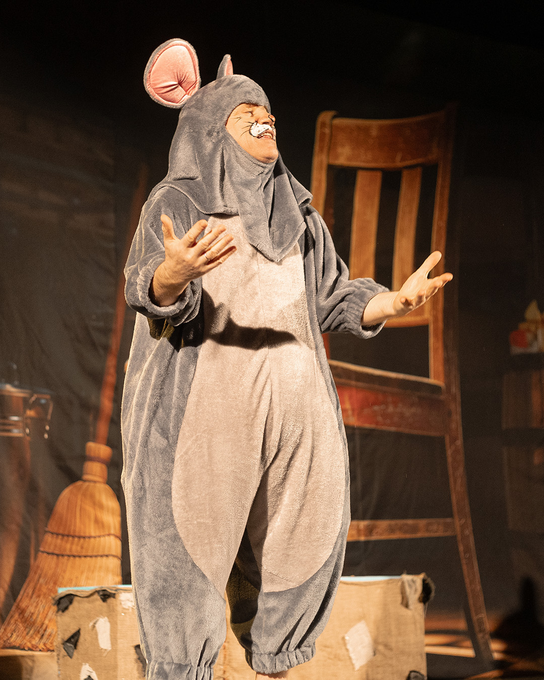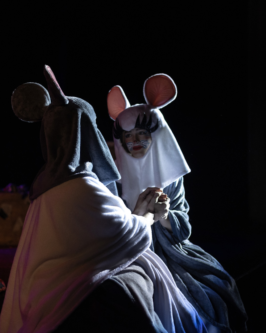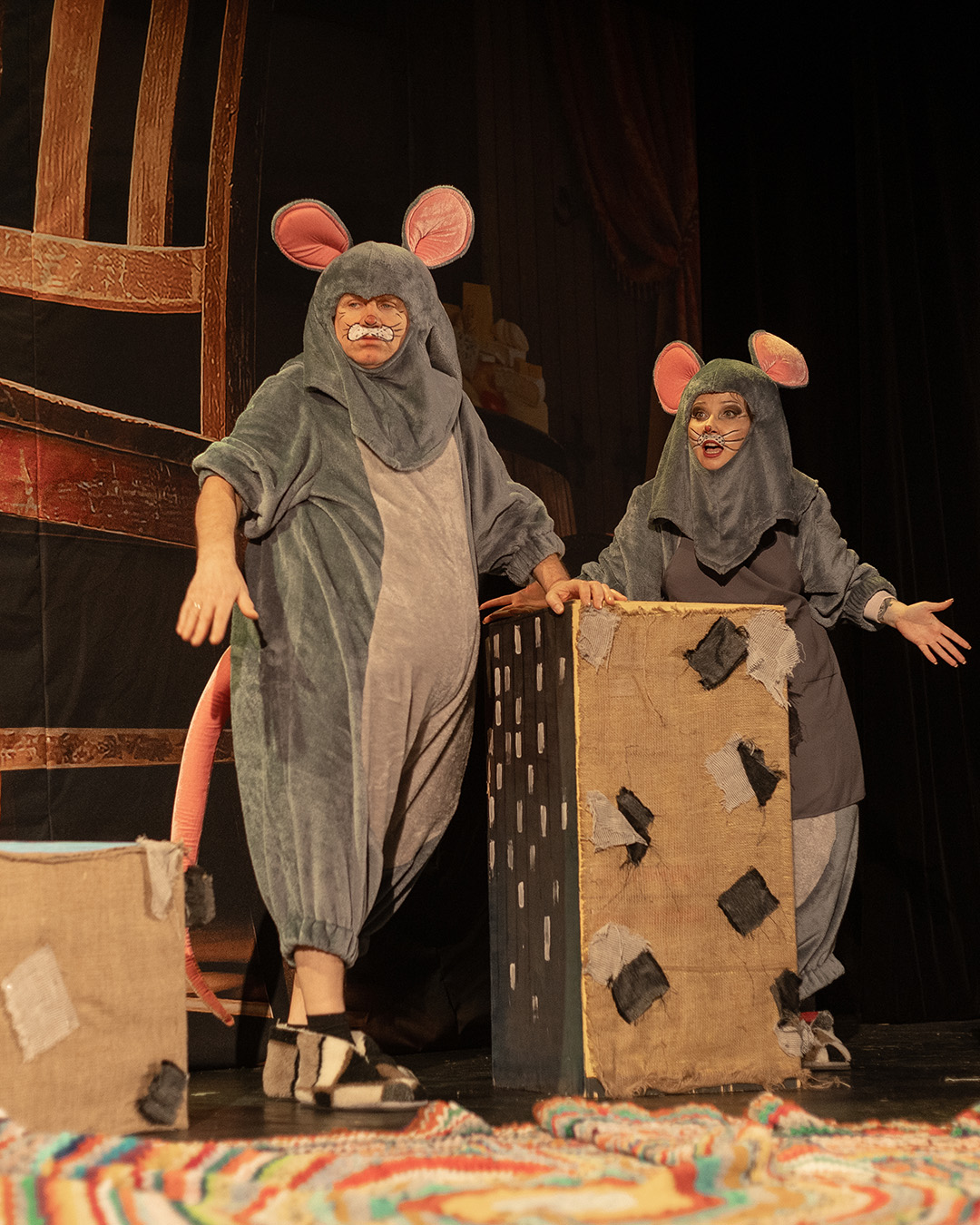 «Усі миші люблять сир» - яскрава сімейна вистава театру Egoist за участі Народних артистів України Сергія Калантая та Анатолія Гнатюка. Це казкова й дотепна історія про двох маленьких мишенят — сірого Шома та білу Фружі. Вони з різних мишачих родин, які звикли жити окремо й дивитися одне на одного з недовірою. Але почуття не питають дозволу. І коли між ними народжується щира симпатія, дорослим доводиться переглянути власні правила. Так, у цій історії легко впізнати мотиви «Ромео і Джульєтти». Та на відміну від трагічної класики, тут перемагає світло. Бо навіть якщо хтось сірий, а хтось білий — це не причина для ворожнечі і заборон. Адже всі живуть під одним небом, бояться одних і тих самих небезпек і радіють однаковим речам. Наприклад, усі миші бояться котів… і всі без винятку люблять сир. Це вистава про прийняття, про сміливість бути собою та про те, як любов здатна розтопити навіть найупертіші упередження. Любов і дружба тут стають силою, здатною об’єднати різні світи, та змінити правила гри Вистава однаково захоплює дітей і дорослих: динамічний сюжет, гумор і яскраві костюми створюють ефект повного занурення та перетворюють перегляд на спільну сімейну подію.